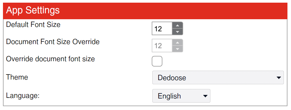 2. To change your text-based data font size, select the "override document font size" option to enable Dedoose to modify the font off all text-based media and excerpts in your project.