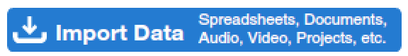 To import qualitative data such as documents/transcripts, PDFs, images, audio, video, text, surveys, descriptor or quantitative data, or other projects, select the large "Import Data" button on the home screen; or select the addition icon within the Media workspace.